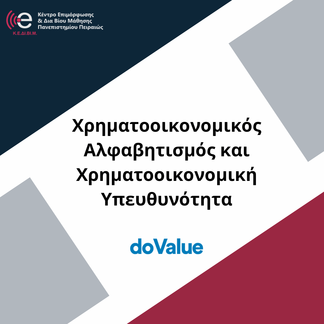 Το πρόγραμμα υλοποιείται από το Κέντρο Χρηματοοικονομικής Υπευθυνότητας – doResponsible Financial Center της doValue Greece, σε συνεργασία με το Κέντρο Επιμόρφωσης και Δια Βίου Μάθησης του Πανεπιστημίου Πειραιώς, υπό την επιστημονική καθοδήγηση του Καθηγητή Χρηματοοικονομικής του Πανεπιστημίου Πειραιώς, Νικόλαου Δ. Φίλιππα.